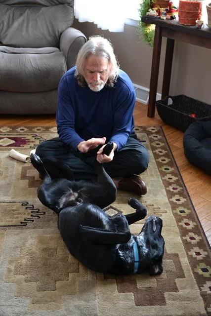 Whether walking in the snow, meeting Lake Michigan, hearing the unique call of the sandhill cranes at the nearby field, greeting our neighbors, attending obedience class, welcoming guests to our home, riding in the car, playing with other dogs, chasing down a tennis ball, eating the garden's spent brussel sprouts and kohlrabi, learning the antagonistic ways of squirrels, or trying to curl up on our laps, Davey embraces life with a sense of wonder and enthusiasm that has renewed our own spirits. We have received countless unexpected joys seeing the world through his eyes. Our home possesses more laughter and affection, contentment and wonder, gratitude and connectivity all because of this special guy's vitality.